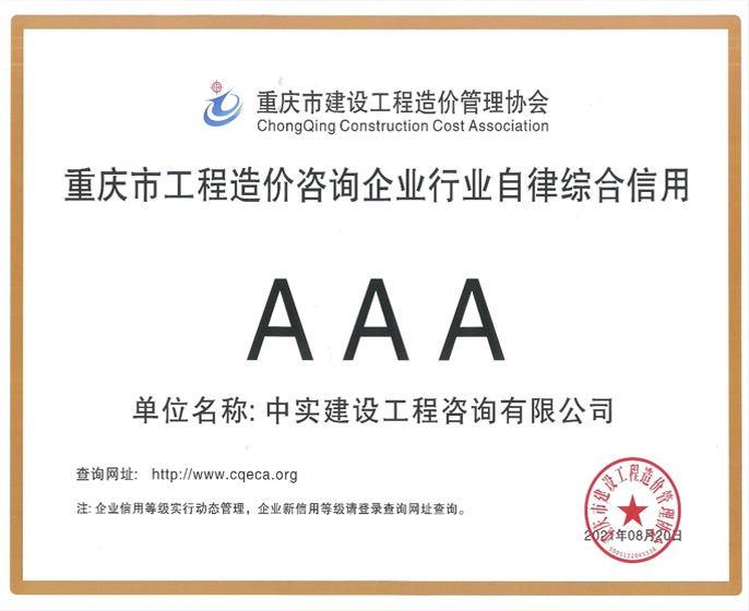 喜報!中實咨詢榮獲造價咨詢企業(yè)AAA級行業(yè)自律綜合信用評價等級